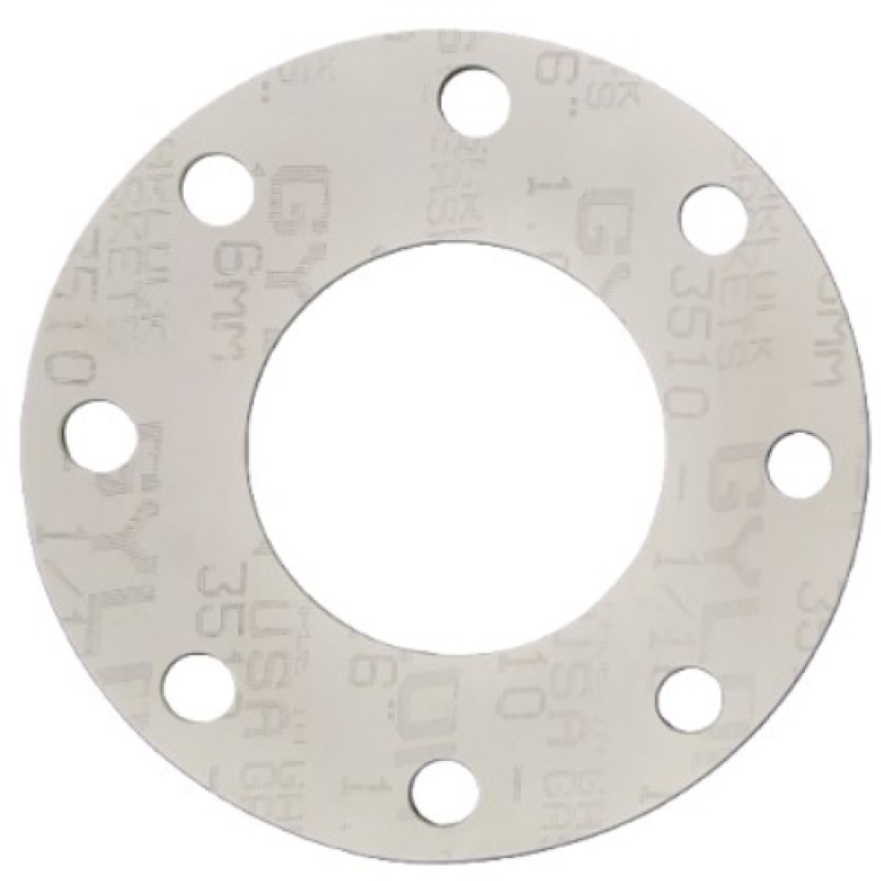 8 inch Full Face Gasket, 3510 Series Garlock, 1/8 inch Thickness, 8 bolt holes, Bolt Hole Diameter: 7/8 inch, Tempature range (F): 500 to -450, Pressure Class 150, Color: Off-White, For Use With: Strong Caustics, Moderate Acids, Chlorine, Gases, Monomers, Steam, Hydrocarbons, Cryogenics, and Aluminum Fluoride, Gasket Compound Material: PTFE with Barium Sulfate