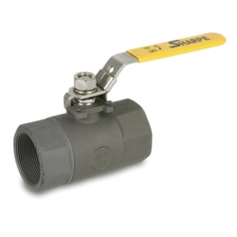 Sharpe® Ball Valve, 2-Piece, Series: 54574, 1/4 in Nominal, Thread End Style, 2000 psi CWP Pressure, Standard Port, 0.46 in Orifice, Lever Operated Actuator, 316 Stainless Steel Ball, 2-1/4 in Inlet to Outlet Length, 2.13 in Top to Inlet Center, 316 Stainless Steel Body, 316 Stainless Steel Stem and RTFE Seat Trim, PTFE Softgoods