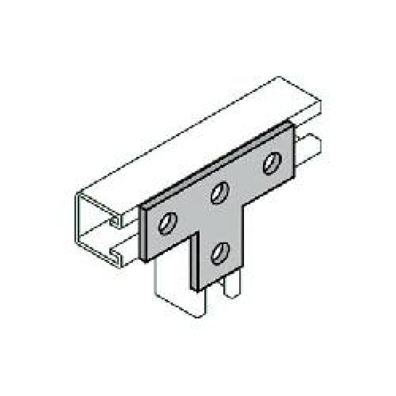 Tee Plate, 4 Holes, 5-3/8 in Length, 1-5/8 in Width, 1/4 in Thickness, 9/16 in Dia, 13/16 in, 1-7/8 in Hole Spacing, For Use With: Anvil-Strutâ„¢ 1-5/8 in Wide Channel, Channel Mount, Carbon Steel, Electro-Galvanized