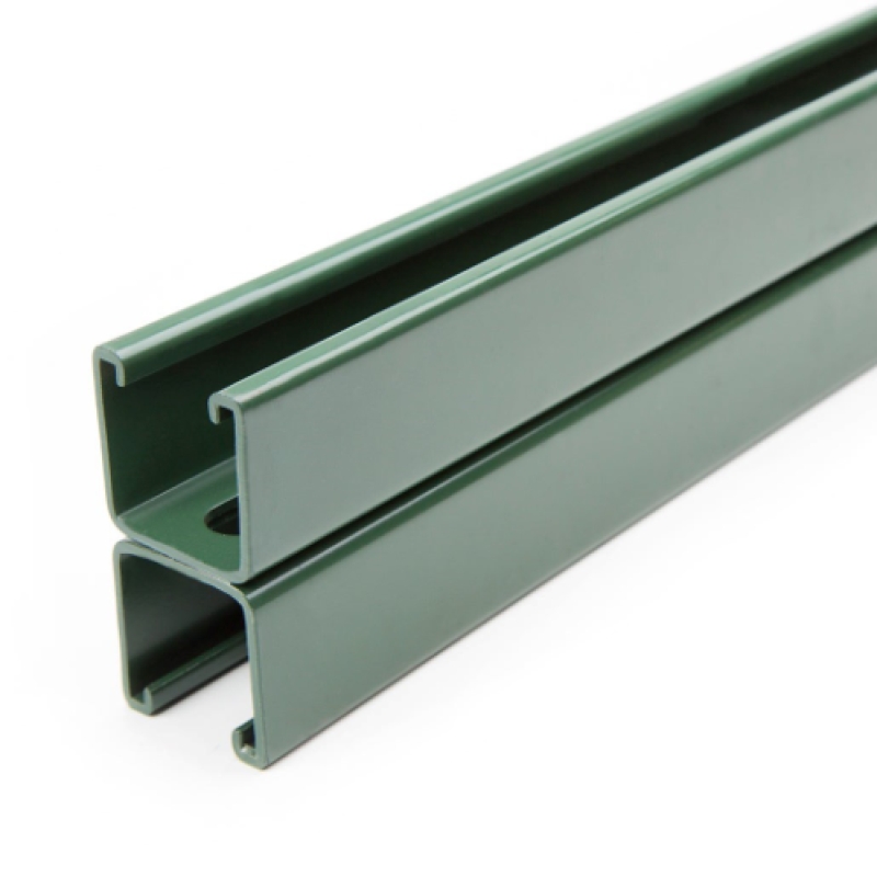 Welded Channel, Back-to-Back, 1-5/8 in Width, 3-1/4 in D, 20 ft Length, 12 ga Thickness, 2 in Slot Spacing, Supr-Green Powder Coated